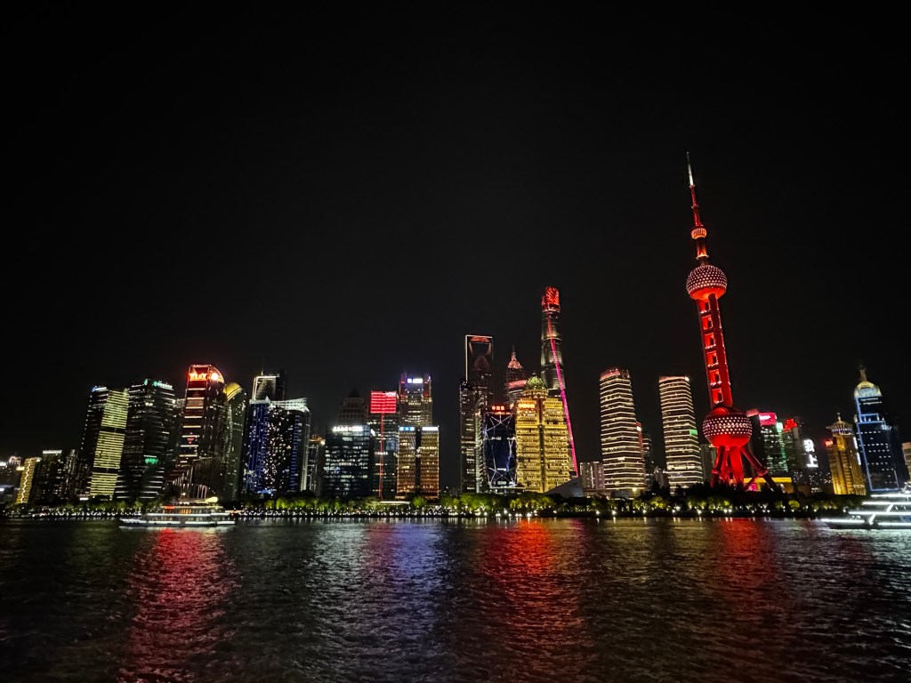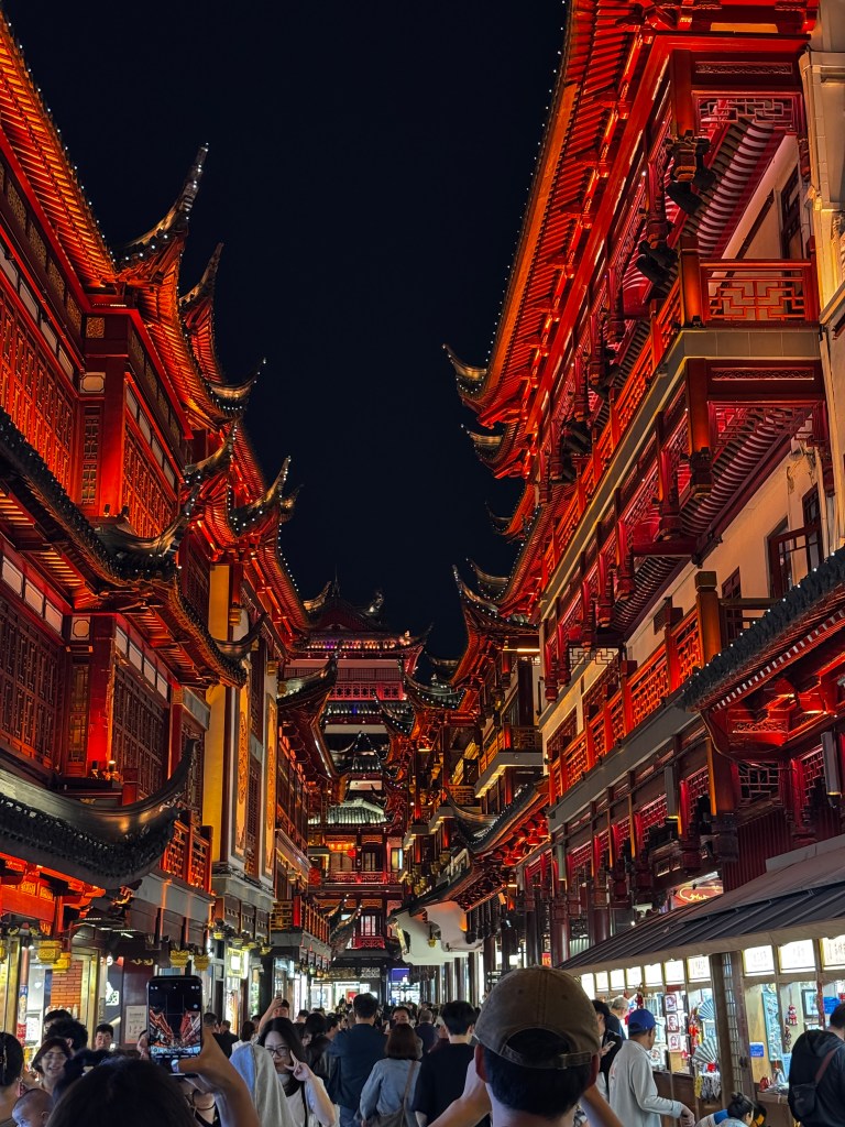 The first thing that hit me about Shanghai was it’s sheer size. The city is an endlessly sprawling metropolis with tower block after tower block vying for space in the sky. Not surprising how many of these there are given the burgeoning population (around 28 million people). Yet surprisingly enough, most of these concret needles didn’t feel they were suffocating the life out of the city. Everywhere around us, there was always a healthy sprawling green canopy lining streets and parks. At street level, there are countless wide urban streets with many raised highways on bridges. The scale of infrastructure construction is stupendous and we saw so many buildings and bridges still on their way to completion. Thousands of cars, mopeds and bicycles all traverse the city with an amazingly seemless precision and yet the city’s transport network functions so well. To call it organised chaos would be disingenuous as chaos isn’t what I saw. Meanwhile, below street level, the metro functions so smoothly and efficiently delivering millions of people to their destinations every hour or every day.